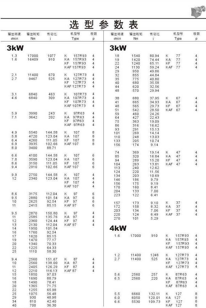 選型參數(shù)表3kW和4kW