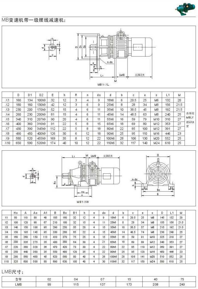 MB變速機(jī)一級(jí)擺線減速機(jī)安裝尺寸LMB尺寸