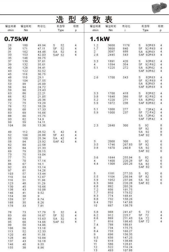 選型參數(shù)表0.75kW(續(xù))和1.1kW