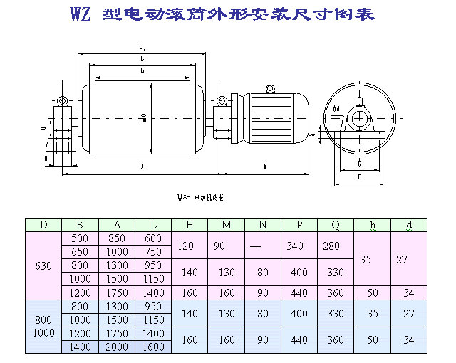 WZ外裝式擺線(xiàn)電動(dòng)滾筒系列參數(shù)表: